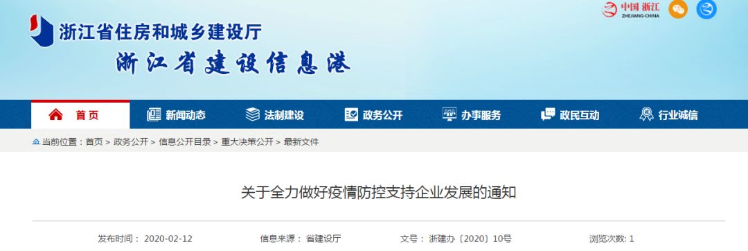 2月12日,浙江省住建廳出臺(tái)《關(guān)于全力做好疫情防控支持企業(yè)發(fā)展的通知》,發(fā)布18條政策舉措保障企業(yè)復(fù)工復(fù)產(chǎn)。針對(duì)建筑企業(yè),《通知》提出: