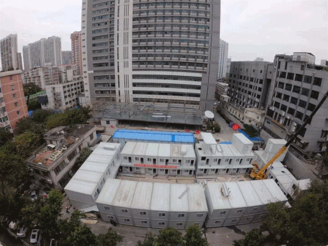 歷經(jīng)12天鏖戰(zhàn),截至目前,中建八局迅速建設了應急隔離病房72間、醫(yī)護人員隔離板房32間,共使用標準集裝箱396間。完成配套道路、給排水、照明、公用等工程建設。